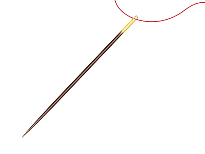 Das goldbeschichtete Öhr erleichtert das Einfädeln der Nadel