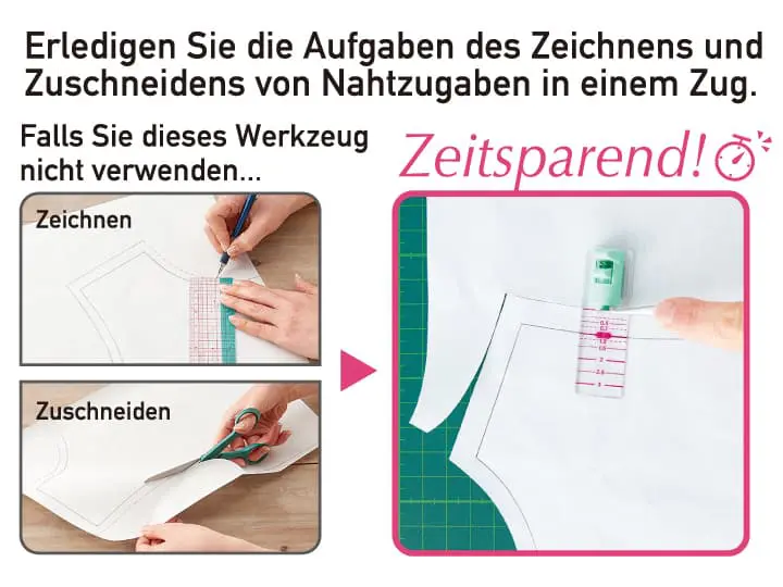 Erledigen Sie die Aufgaben des Zeichnens und Zuschneidens von Nahtzugaben in einem Zug.