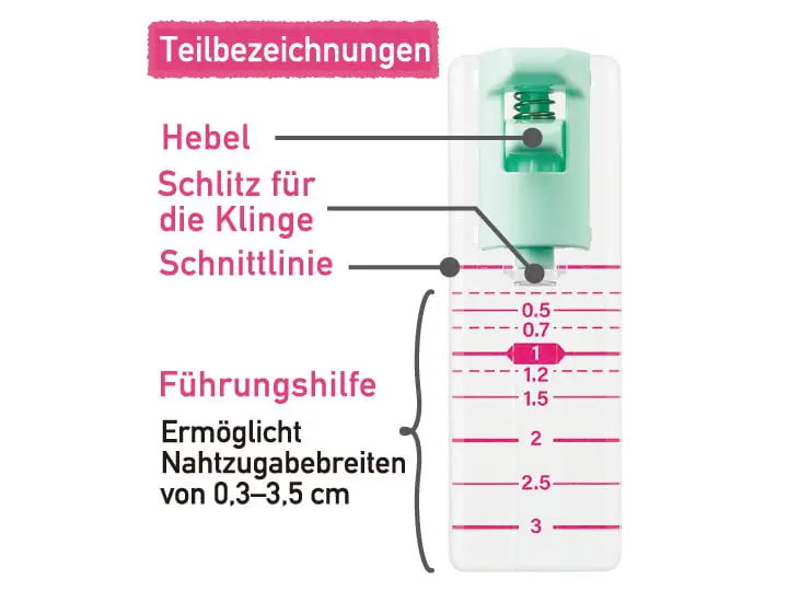 Ermöglicht Nahtzugabebreiten von 0,3–3,5 cm