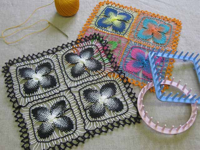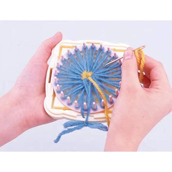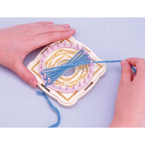 Zum Anfertigen eines hübschen Motivs müssen Sie nur einen Rahmen auf den Webstuhl legen, und mit dem Stift Garn einweben!