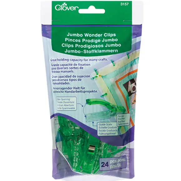 • Diese Clips sind praktisch für das Halten von breiten Nahtzugaben, Taschenöffnungen und Griffen.