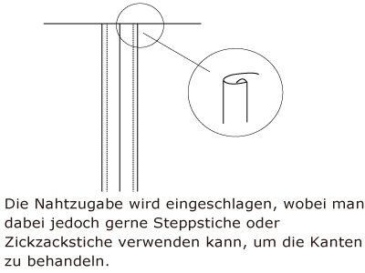 Schlagen Sie die Zugabe ein und nähen Sie über die Falte.