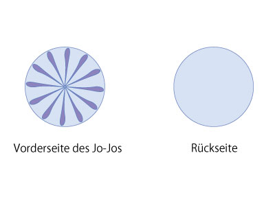 Der Faden befindet sich in der Mitte auf der Vorderseite des Jo-Jos.