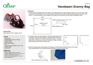 Prepare cloth as detailed below (The exterior of the bag pictured is made with plain colored cloth and the lining inside is made with printed cloth). Cover the wrong side of the exterior cloth with the fusible interfacing and fuse with an iron. Draw a 1 cm seam allowance at the edges of the lining and mouth pieces of cloth using an erasable marker.