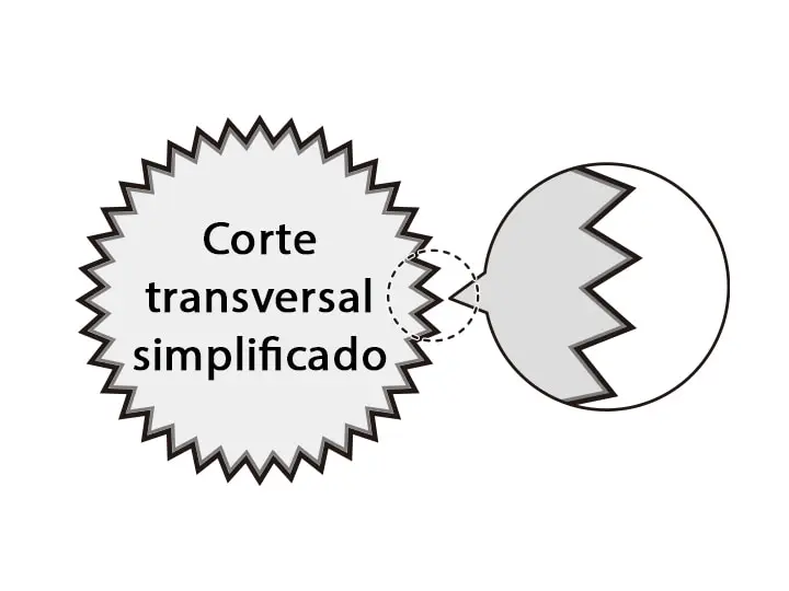 Fabricado en acero de alta calidad. A través de la técnica de procesamiento de enfriado y templado para maximizar sus características, ofrece un óptimo equilibrio entre dureza y elasticidad.