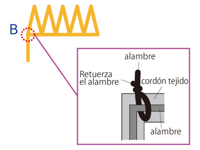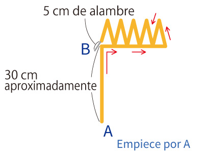 Para terminar, una el extremo del alambre B con la esquina de la corona.