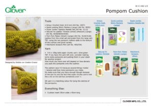 CONSEJO: El ganchillo es útil para pasar las puntas de hilo. Sin embargo, verifique dónde quedará el centro del frente del cojín antes de colocar los pompones. Ate los pompones por detrás del panel de ganchillo y recorte los extremos de la cola dejando un poco de hilo para mantenerlos seguros. Con el hilo y la mayor de las agujas de zurcir del set, cosa los laterales y la base del cojín, dejando una abertura en la base. Meta el relleno del cojín y cierre la abertura.
