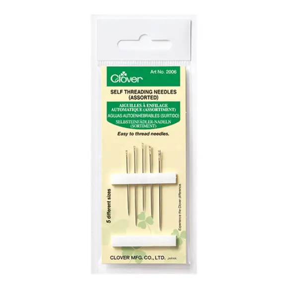 Aiguilles équipées d’un système d’enfilage pratique. Placer le fil dans la fente en U située au sommet de l’aiguille et tirer vers le bas pour le faire entrer dans le chas.