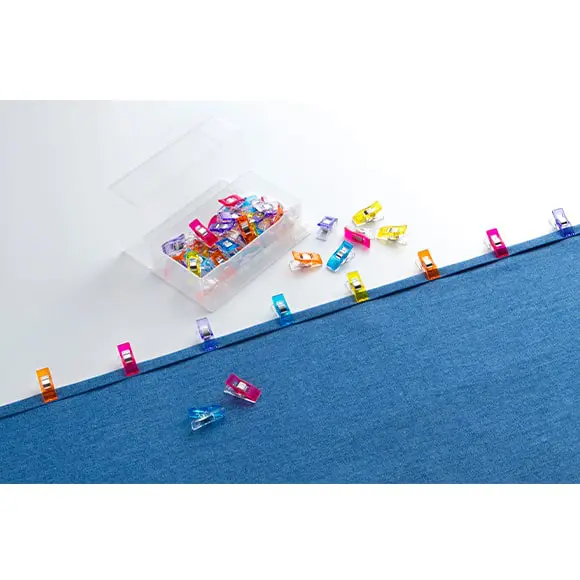 – Grande alternative aux épingles, spécialement lors d’un travail avec du vinyle, du tissu poilu ou de la toile lourde.