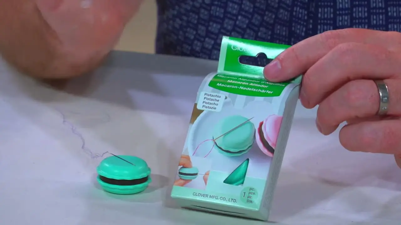 Aiguisez vos aiguilles avec ce joli macaron à aiguiser.