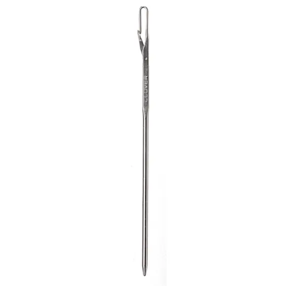 Dank des Hakens können mehrfädige und dicke Wollgarne leicht aufgefädelt werden.