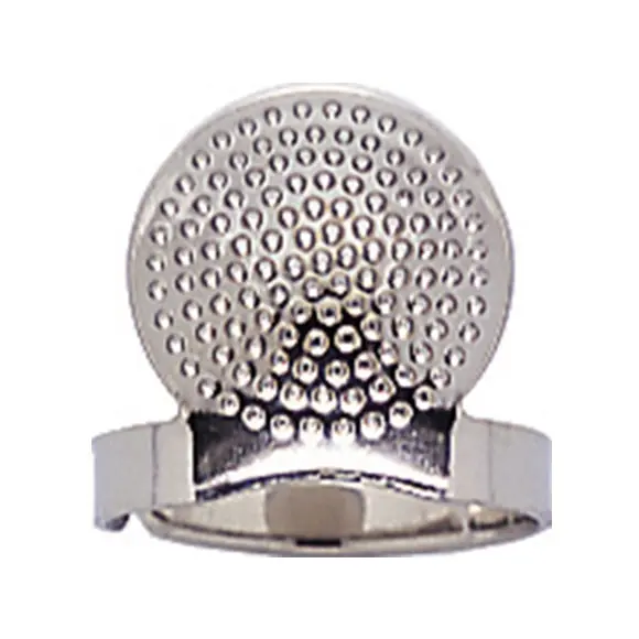Der offene Ringfingerhut aus Metall passt sich jeder Fingerstärke an und eignet sich auch für dicke Nadeln.