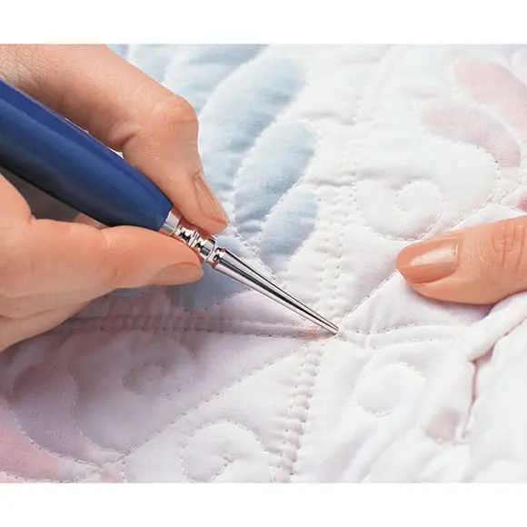 Die Ahle mit Kugelspitze macht Löcher in Stoff, indem dieser ohne jeglichen Fadenriss leicht gedehnt wird.