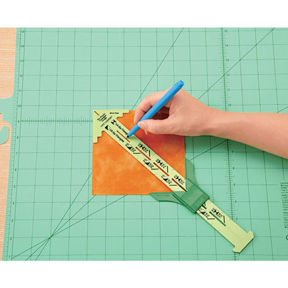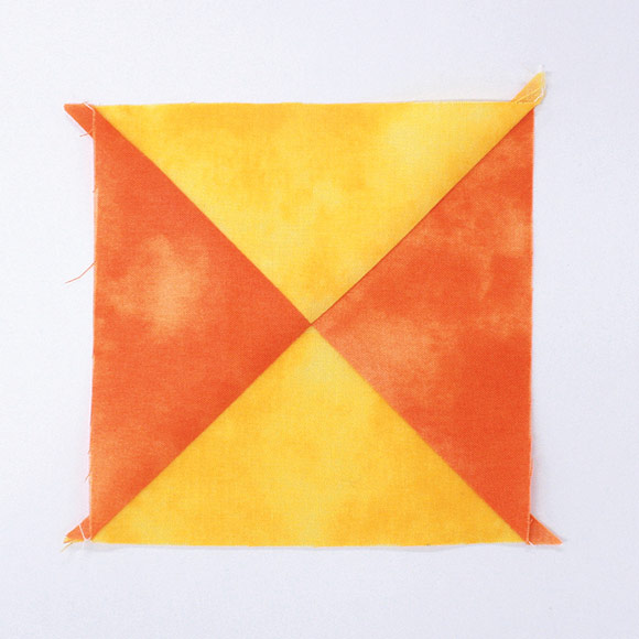 Erzeugen Sie quadratische Blocks, die jeweils aus 2 oder 4 Dreiecken bestehen, ohne ein einziges Dreieck zuzuschneiden.