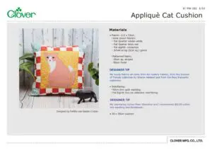 Schneiden Sie die Applikationsteile exakt aus. Bauen Sie die Katze mit dem Körper in die Mitte des Mittelteils. Fügen Sie dann die weißen Teile hinzu und denken Sie daran, dass dort, wo Sie eine gestrichelte Linie auf der Vorlage sehen, dieses Teil unter ein anderes geht. Beenden Sie mit den grünen Augen und der ziegelroten Nase. Fädeln Sie schwarzes Garn in Ihre Maschine ein und verwenden Sie einen Stopffuß, um die Applikation mit Freihandstickerei fertigzustellen.