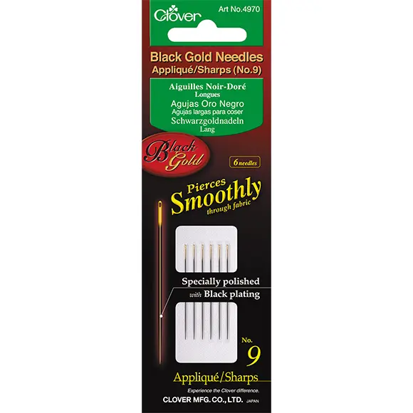 Tür- und Fensterpositionen auf einem der Hauspaneele mit dem „Luftlöslicher Vorzeichenstift“ markieren. Tür- und Fensterstücke unter Verwendung einer „Schwarzgoldnadel Lang“ und farblich passendem Faden mit Überwendlichstich an das Panel festnähen. Fensterbank mit Garn besticken.