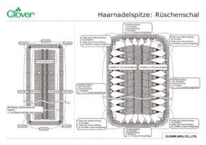 Gabelhäkler 4 cm breit einstellen. Streifen B mit 318 Schleifen auf jeder Seite anfertigen.