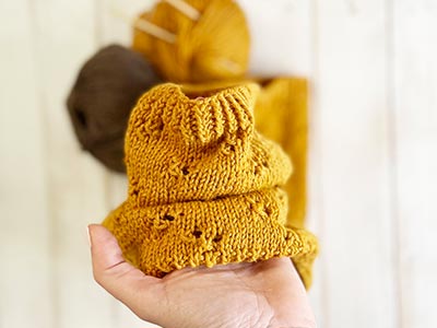 Die Haube wird in Runden von oben nach unten durchgearbeitet.
