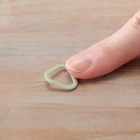 The unique triangular shape allows the knitting needle tips to easily slide when transferring markers from one needle to another. It doesn’t get in the way while knitting.