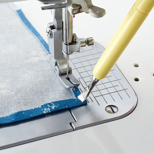 Stylus: The smooth tip is safe to use on fabric or paper. The tapered end easily slips under stitches.