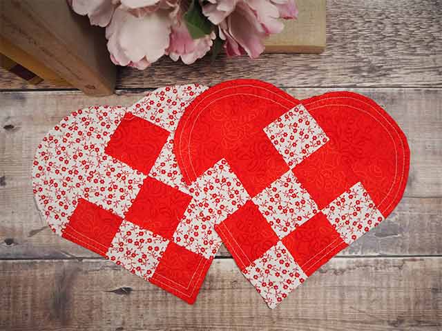 Quilt by sewing two rows of concentric lines following the heart shape. Repeat for the other mat.