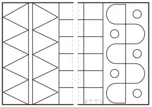 Transfer the template onto the fabric. After printing the template design on an A4-size paper, cut it in half to make them A5-size pieces (left and right). Make photocopy of both pieces with 200% enlargement and align them together at the dotted line and secure them with tape.