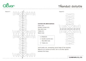 Make four flower motifs with cotton thread [A] (see Nanduti flower motif).