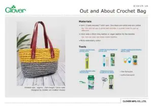 • Yarn: 2 balls recycled T-shirt yarn. One black and white and one yellow