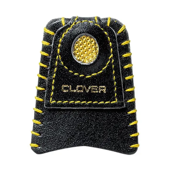 Respuesta a las diversas necesidades de los acolchadores en el manejo de agujas. Hecho de cuero suave, tiene incorporada una plaquita de metal en la punta para proteger la yema del dedo.