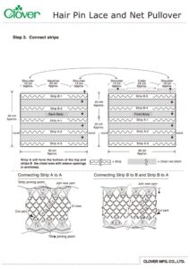 Teja el punto de red para la parte superior de B-1. No corte el hilo y deje suficiente para unir la tira B-1 con B-3 para el hombro derecho. (Ver en el diagrama)