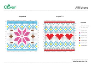 Con el hilo de lana C, monte 25 pts. Empiece con una hilera en d (LD), tejer las hileras 1-24 del diagrama A, leyendo las hileras con número impar (LD) de la derecha a la izquierda y las hileras con número par (LR) de la izquierda a la derecha.
