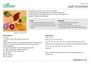 Ce projet peut être réalisé avec n'importe quel fil de laine, quel que soit son poids. Pour réaliser des feuilles larges et épaisses, utilisez un fil de type aran ou chunky. Pour réaliser des feuilles plus petites et plus délicates, utilisez un fil à 4 brins ou un fil DK. Changez la taille de l'aiguille en conséquence.