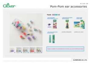 Suivez les étapes 1 et 2 comme dans le projet 【A】 pour faire des pompons. Après avoir noué le fil autour du centre du pompon, coupez-le à 5 mm. Attachez un anneau de saut au fil central comme illustré. Joignez chaque partie comme indiqué sur le diagramme. Coupez l'excès de fil métallique à l'extrémité de l'épingle à tête après l'avoir recourbé vers la perle.