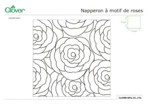 La taille du motif ci-dessous est de 15,5 cm x 15,5 cm. Tracez un contour de 31 cm x 31 cm (carré) et découpez le gabarit du motif. Placez le gabarit à l'intérieur du napperon et tracez le motif quatre fois pour remplir la surface totale. Ajustez le positionnement pour que les joints du motif soient aussi naturels que possible.