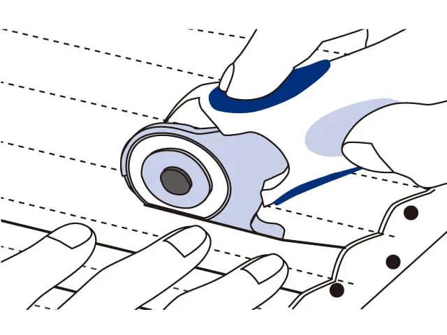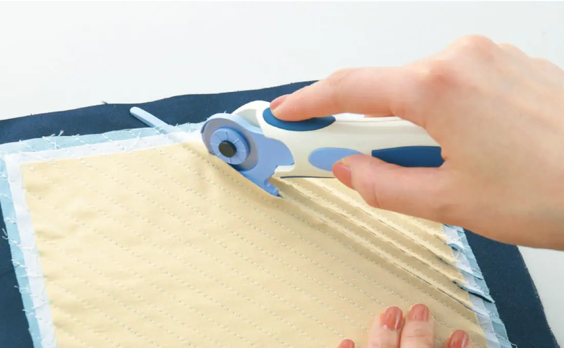 It works with both types of slash quilts by switching the interchangeable guides. Both for stitching intervls wider than 6mm. *This cutter only supports Clover’s