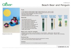 With fastened-off yarn end of body, seam body halfway. With cast-on yarn end, work a gathering thread along cast-on edge and draw tightly. Sew up body a little further, stuff and close body. Seam trunks, encase body and secure the piece to body with stitches around. Attach ears. Sew side seam of muzzle, insert stuffing and attach cast-off edge to face. Attach larger eyes. With yarn H, embroider nose and mouth. Seam ring, stuff, wrap body with the piece and connect both ends. Sew side seam of legs and stuff. Thread yarn A and insert needle from sole, take it out from ankle and repeat. Pull thread to flatten sole and shape ankle. Attach cast-off edge of leg to body. Seam arms and, without stuffing, attach them to body. Stitch hand ends to body so that they wrap over the ring.
