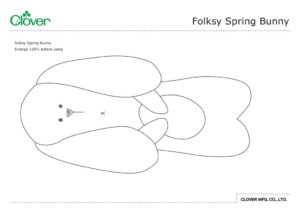 Take the black yarn and darning needle and working on the right side of the bunny, embroider the claws and face using a combination of French knots (the eyes) and straight stitches of varying lengths for the rest. Don’t be fussy about details as this make is designed to be quite primitive looking. Stitch the bow either under the chin for a boy bunny or onto the ear for a girl.