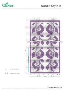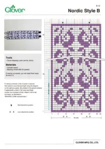 If making a bracelet, a line of purple is weaved, then weave to your desired length using the diagram on the right as a guide, (the product in the picture contains 5 patternswith a total of 102 rows) and finally another line of purple to finish. Attach it with a ball and loops, as described in "BEADING LOOM <Accessovies>" .