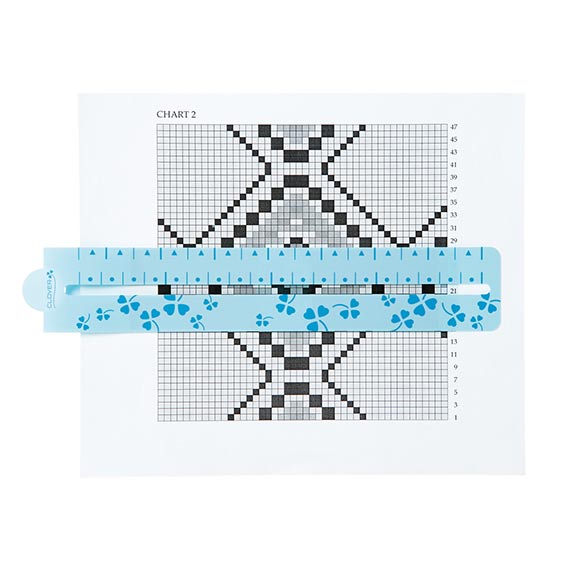 เลื่อนแผ่นคั่นลายลงบนลายและจับไว้ด้วยแม่เหล็กที่แนบมา, แผ่นคั่นจะเคลื่อนที่ได้ง่ายไปยังแถวถัดไปในขณะที่คุณทำงานตามลาย และสามารถใช้เป็นแผ่นคั่นหน้าสำหรับหนังสือหรือนิตยสาร