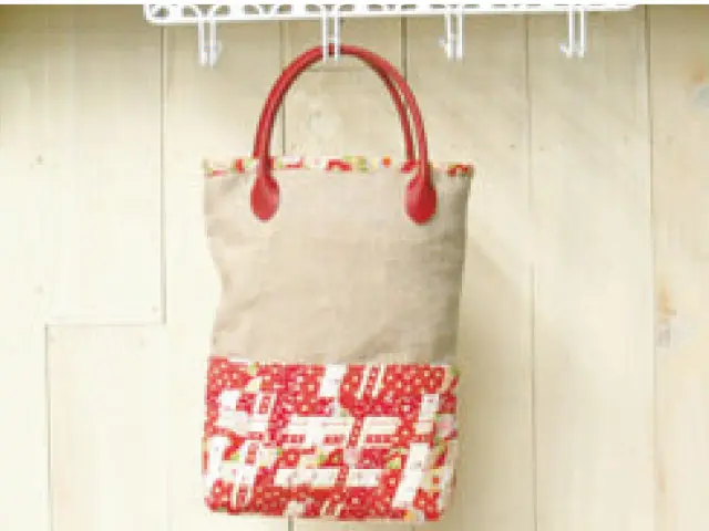 Next make Fusible Bias Tape using a fusible bias tape making. Take the cloth and some fusible web, and stick together using an iron. For the tape at the bag's opening, simply press without using any Fusible Web. For more details, please read the user's manual on Fusible Bias Tape Maker.