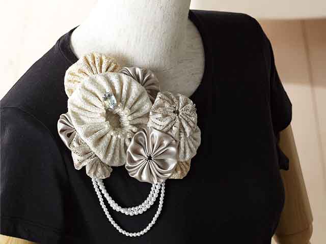 Make an assortment of Large, Extra Large and Jumbo yo-yos out of garment fabrics such as tweed, wool, satin, silk, rayon. Create a pleasing arrangement of yo-yos and embellishments, sew together, and add a pin to the back. Unique and glamorous this brooch will certainly create conversation and envious looks.